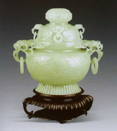 痕都斯坦风格翠玉花形纽香炉