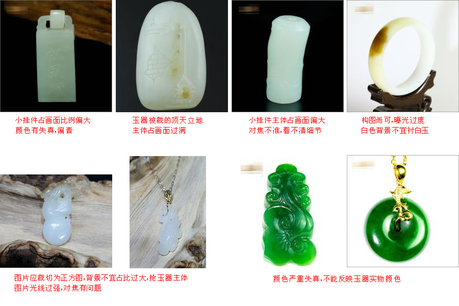 重要提示:玉器不同于其他一般工业产品,他有特殊性和独有性,对于大多数个人用户来说属于比较陌生并且昂贵的商品,对每件玉器商品的认识与了解,更多的是借助于商品图片所呈现的视觉感官信息来获取,那么,准确而专业的商品图片就尤为重要,也是直接影响用户从浏览到购买转化的关键所在,所以,强烈建议玉器图片应由专业的摄影师来拍摄。